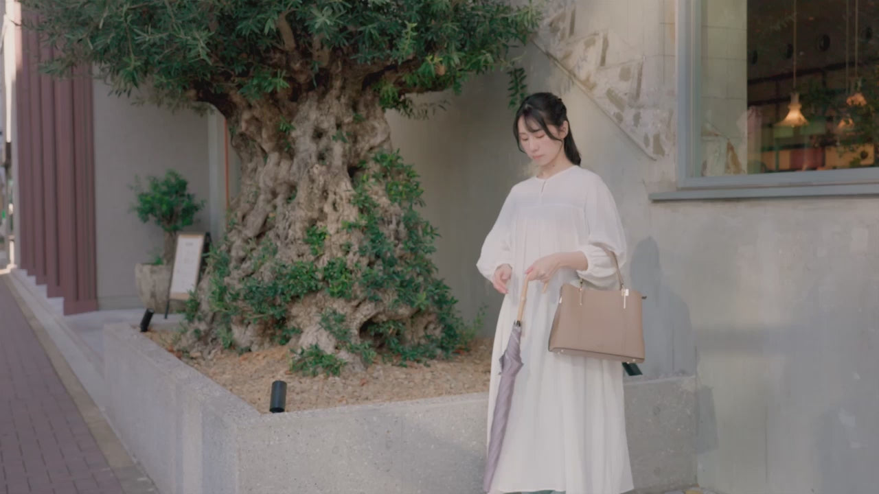 軽量で大きい60cmのカーボン骨をあわせたため、おしゃれと可愛らしさを兼ね備えた機能的な長傘です。ほぐし織ならではの艶のある生地と色の組み合わせ、そして職人がつくり上げる美しい傘の張りをお楽しみください。