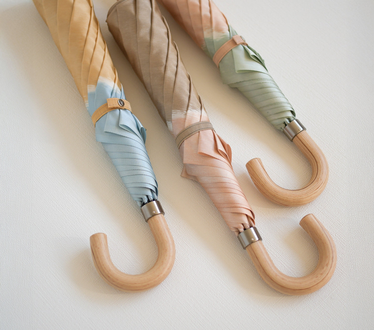 手元(持ち手)のナチュラルなデザインと、傘を入れやすい傘袋も魅力で、甲州織の傘をもっと快適に、そしてスタイリッシュに使えるモデルです。
