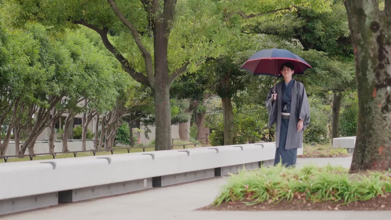 表と裏の色のかさなりをお楽しみいただく、メンズのロングセラー雨晴兼用長傘の8本骨タイプです。